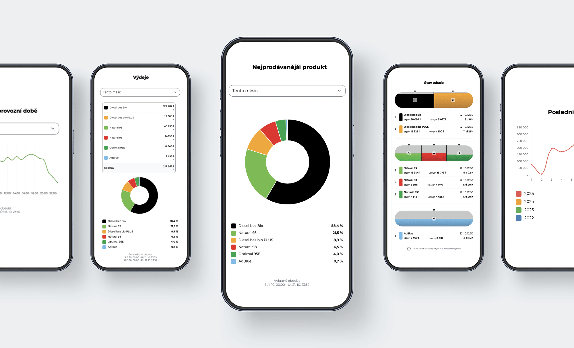 velké sítě čerpaček využívají naše kompletní řešení správy svých stanic